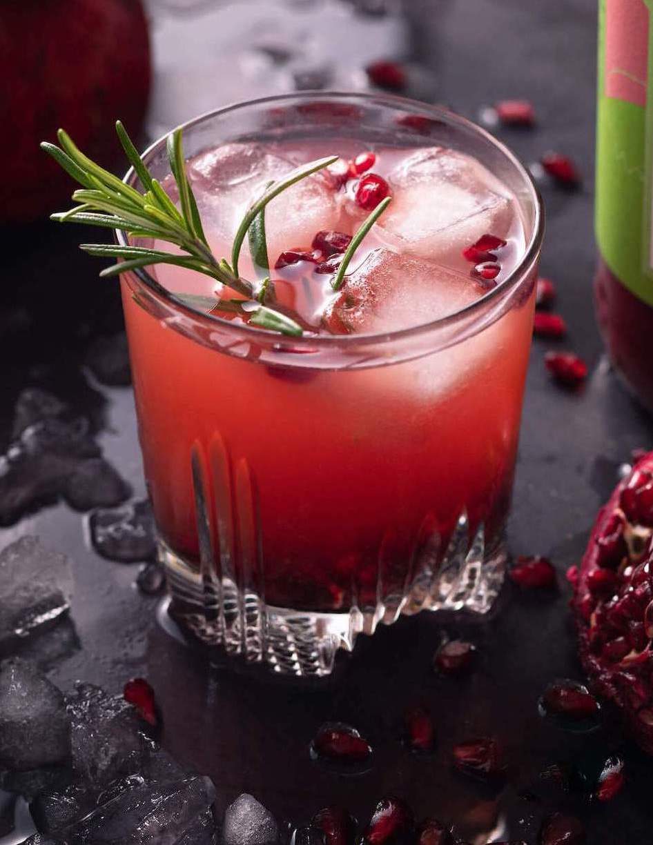 In an old-fashioned glass, add vodka, Pomegranate Bergamot, ice and top off with seltzer. Add rosemary sprig and arils for garnish.
